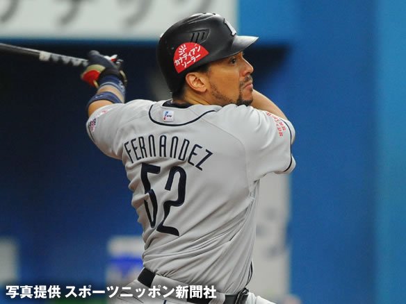 5番 フェルナンデス 右安 1-2から高めのストレートをおっつけ、ライトの前に運んだ! ライトが打球を処理する間に2塁ランナーが勝ち越しのホームを踏んだ! 2対1! フェルナンデスは5試合連続安打と3試合連続打点を記録! ![]() 1