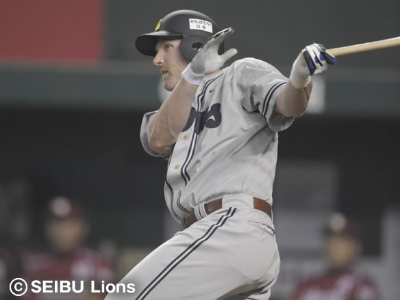 7番 マルハーン 左安 1-2からの5球目、外角へのスライダーを引っ張ると、球足の速い打球が三遊間を抜けた! マルハーンは5試合連続ヒットを放ち好調を維持! |