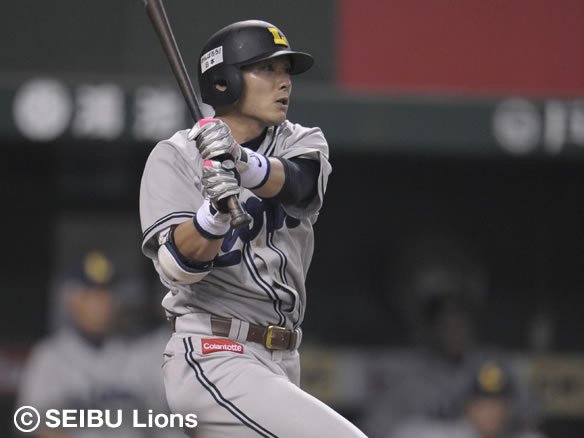 投手 井坂 6番 秋山 右安 1-1から外角へのスライダーを引っ張ると、打球は一二塁間をしぶとく抜けた! |