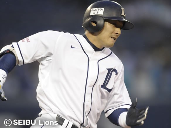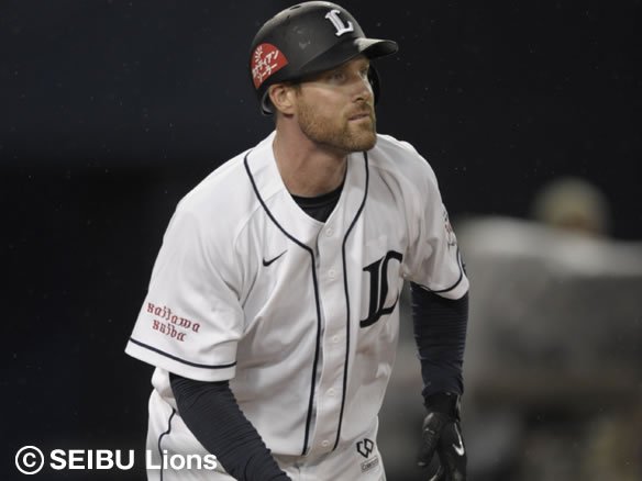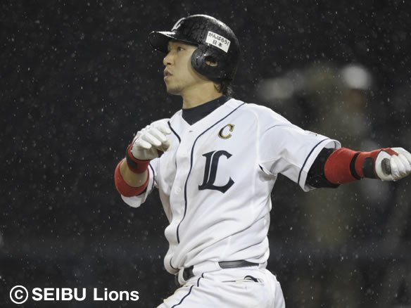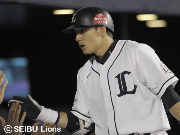 6番 秋山 左安 0-2からの3球目、外角低めへのフォークにうまくバットを合わせると、打球は鮮やかにショートの横を抜けた! 秋山は5試合連続ヒットを記録! |