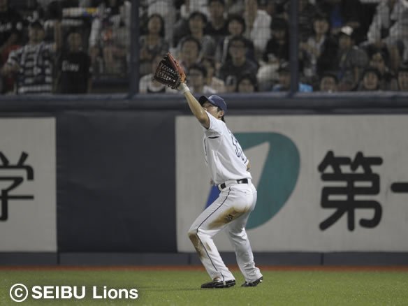 6番 秋山 左飛失 フルカウントからの6球目、内角へのストレートを打ち損じてしまい、打球はレフトへの浅いフライとなった。しかし、レフトがこれを落球し、1塁ランナーは3塁へ進み、バッターランナーは2塁へ進んだ! |