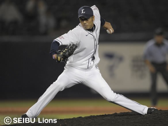 投手 金子千尋 栗山が勝ち越し弾を放つと、大崎やマルハーンのタイムリーも飛び出してリードを広げました! 序盤を終えて、試合はライオンズペースです! |