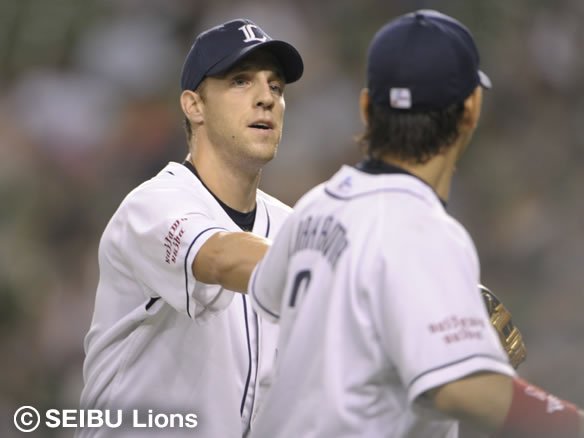 帆足は7回を投げてマウンドを降り、この回からは継投陣がマウンドへ。相手打線の粘り強い攻撃に晒されたものの、3人の投手を費やして無失点で切り抜けました! ピンチの後にチャンス有りの言葉通りに、勝ち越しを果たしましょう! |