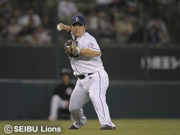 投手 ウルフ 4番 中村 三邪飛 2-1から高めのシュートを打ち上げてしまい、平凡なフライとなった打球は3塁線近くでサードに捕球された。 |