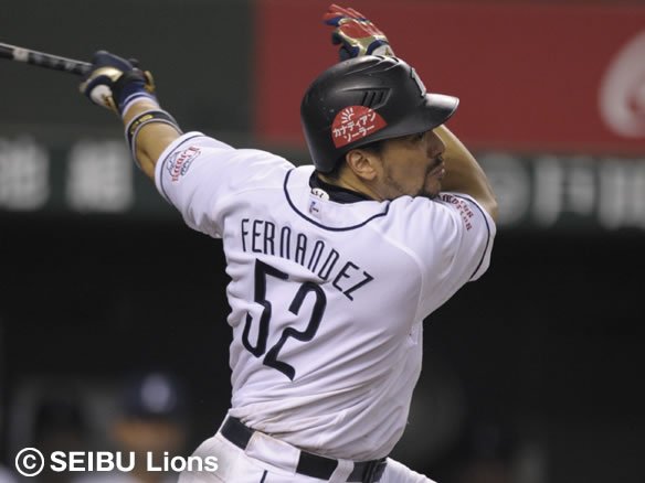 6番 フェルナンデス 右飛 0-1から外角のカットボールをおっつけ、打球は鋭いライナーとなったがライトにランニングキャッチされてしまった。 |