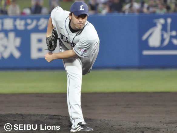 投手 岡本篤 【埼玉西武選手交代】 ピッチャー・星野→岡本篤 |