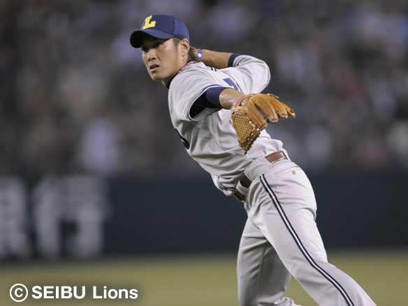 1番 栗山 三ゴ失 初球、外角高めへのスライダーを打った打球は、サードのグラブをはじいた。記録はサードのエラー。 |