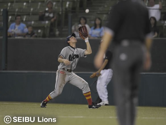 6番 カブレラ 右飛 初球、外角へのストレートを打たせると、外野への大きな当たりはウォーニングゾーン手前でライトが落下点に入った。 |