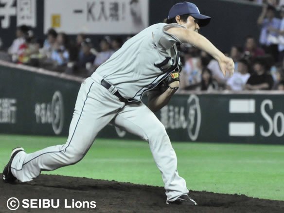 投手 岡本篤 【埼玉西武選手交代】 ピッチャー・菊池→岡本篤 |