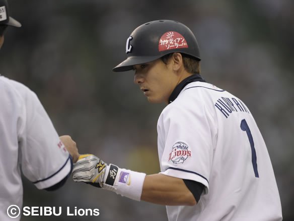 3番 中島 中安 2-1から外角へのスライダーを逆らわずに打ち返し、センター前に運んだ! 中島はこれで13試合連続安打を記録! |