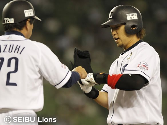 この試合初めてランナーを出すと、中島と中村の打棒がリードをたたき出しました! 好投を続ける西口にとって、心強い援護射撃です!! |