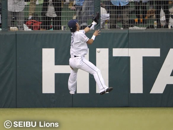 浅村は松田の打球を追い掛けるも惜しくも届かず