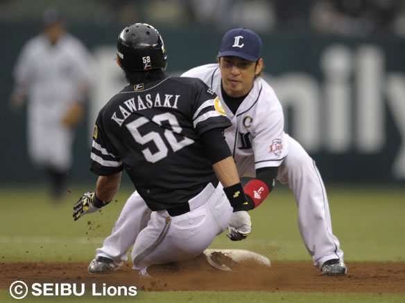 投手 石井 1番 川崎 二ゴ 初球、外角高めのスライダーで打ち損じさせ、高く弾むゴロをセカンドがさばいた。 |