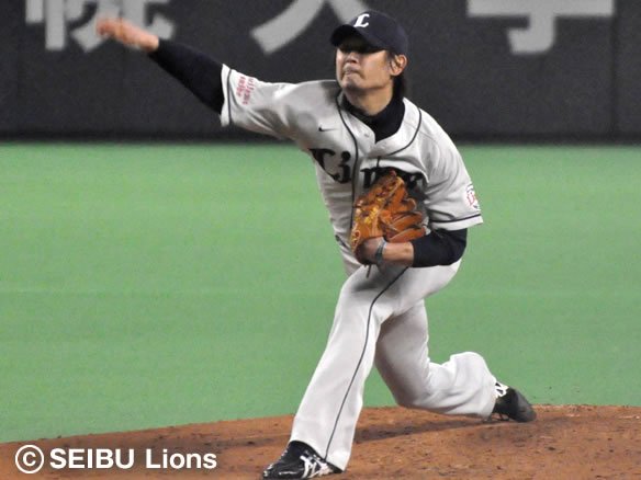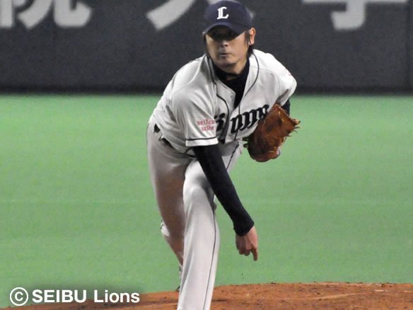 投手 涌井 1番 陽 三ゴ 1-1から外角へのスライダーで引っ掛けさせ、ボテボテのゴロをサードが前進しながら軽快にさばいた。 |