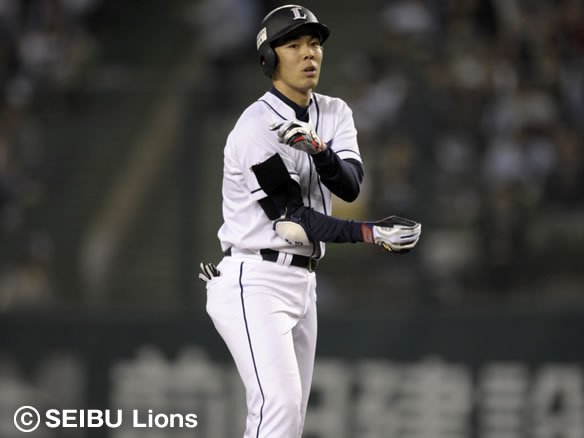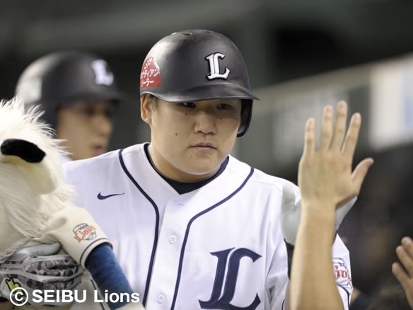 ライオンズの誇る主砲・中村の一発で先制に成功しました! この後もチームの原動力「一戦必勝」の精神を最大限に発揮し、勝負を制しましょう! |