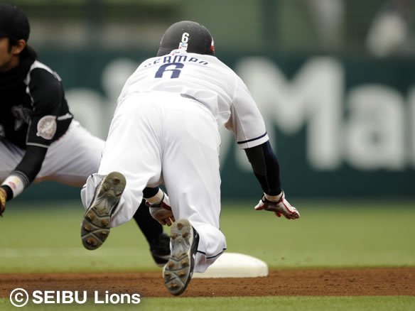 投手 牧田 2番 根元 遊安 2-2から外角へのシンカーを流し打ちされると、打球が三遊間へ。ショートが逆シングルでつかみ1塁へジャンピングスローするも、間に合わない。 |