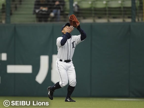 センター・栗山がしっかりと打球をグラブに収める
