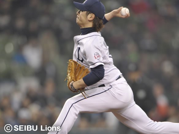 1アウトから走者を出し、相手4番打者との対戦となった涌井。落ち着いて低めに投球し、村田をきっちりダブルプレーに仕留めました! 涌井の粘りある投球に、打線もそろそろ応えてほしい! |