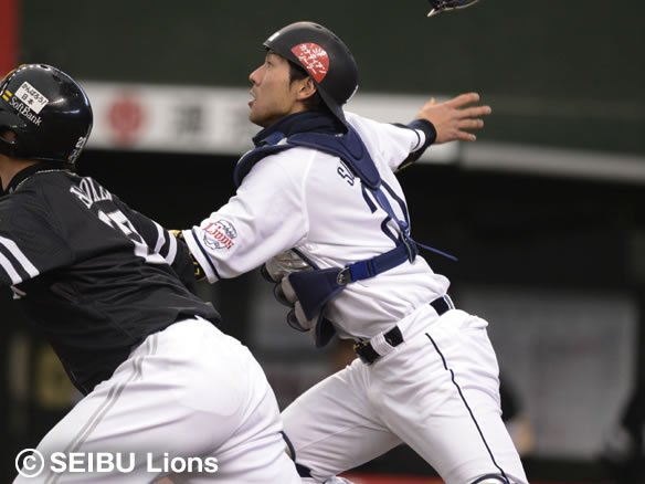 涌井は逆転を許してしまいましたが、女房役・炭谷が良い判断を見せて相手の攻撃を断ちました。打線がつなぎの攻撃を展開し、追い付きたいところです! |