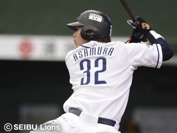 投手 新垣 3番 中島 中安 1-0から高めのストレートに力負けせずに押し込むと、鋭い打球が二遊間へ飛び付くセカンドの横を破っていった! 中島はこれで4試合連続ヒットを記録! |