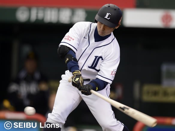 1番 栗山 中安 2-2から外角へのスライダーにバットの先で食らい付くと、センターの前で弾む打球となった! 栗山はこれで猛打賞! |