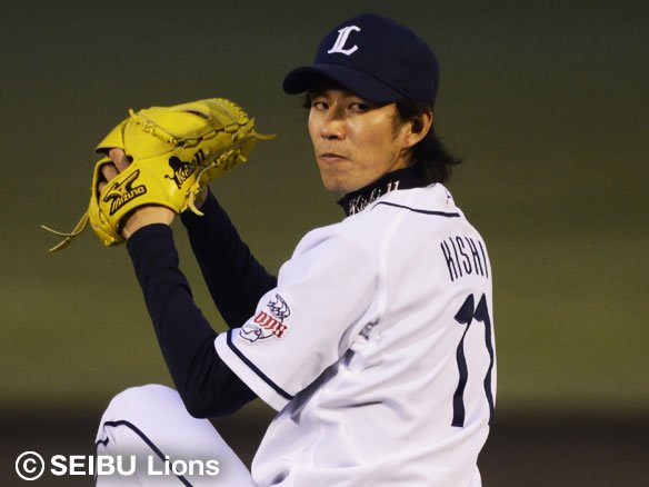 | 1アウト | 投手 岸 1番 田中賢 投直 2-2から内角低めのストレートで詰まらせると、正面へ飛ぶハーフライナーとなる。ピッチャー・岸が落ち着いて打球をグラブに収めた! |