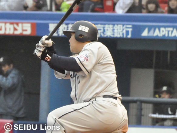 投手 西口 5番 福浦 右安 1-0から内角高めのスライダーを引っ張られ、ライト前で弾む打球となった。 |