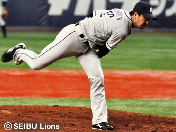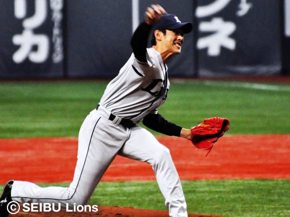 投手 西口 5番 バルディリス 右飛 2-1から外角低めのスライダーをおっつけられるが、高く上がる打球はライトがウォーニングゾーンの手前まで下がりキャッチした。 |