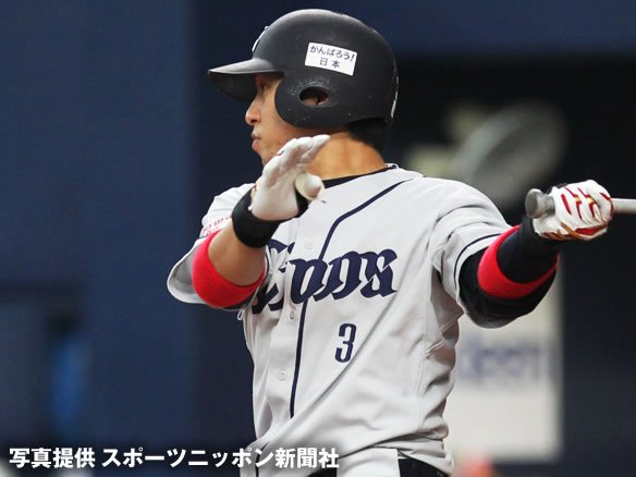 打撃好調の秋山が犠牲フライを放って1点を追加! そつのない攻撃で相手を引き離していきます! |