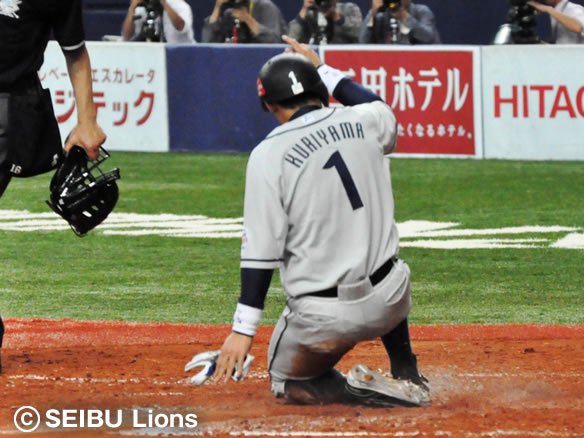中島の適時打で栗山がホームイン!