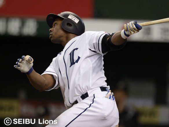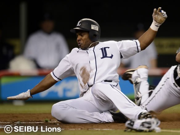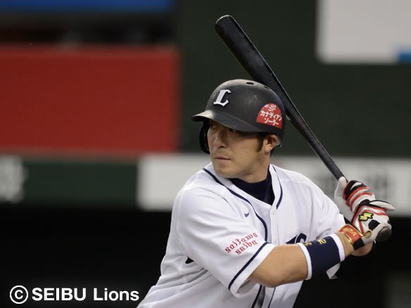 4番 サブロー 右安 1-0から高めのストレートを右方向へ打ち返され、球足の速いゴロが一二塁間を抜けていく。ライト・秋山が強肩を生かして本塁へ返球し、2塁ランナーを3塁で止めた! |