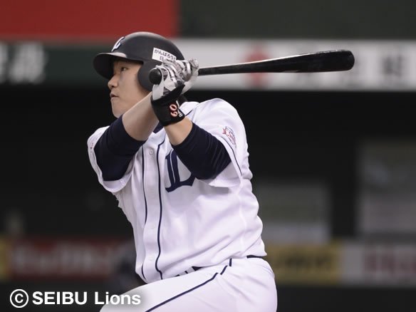 浅村が相手の意表を突く攻撃を見せますが、惜しくも出塁なりませんでした。同点のまま試合は後半へ。ライオンズらしく力強い当たりを放ち、勝利を呼び込みましょう! |