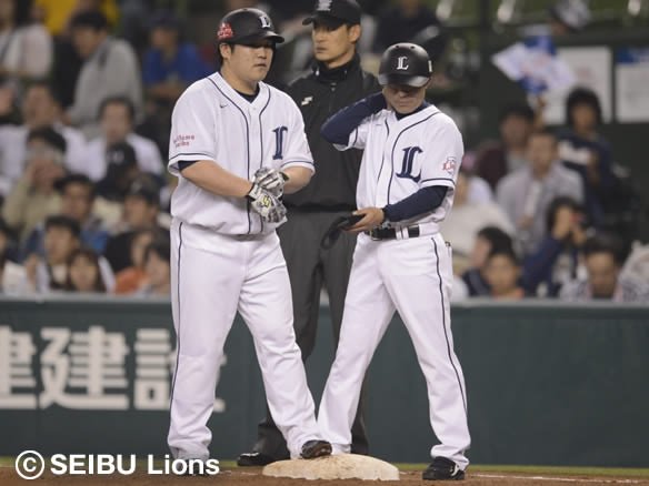 片岡と栗山に連続タイムリーが飛び出し、2点を先制! ライオンズらしいつなぐ攻撃で優位に立っています! |