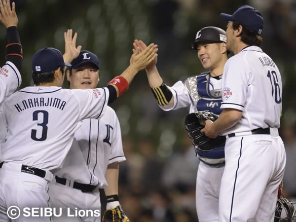 9回も続投となった石井が無失点に抑えて試合終了! 2塁を踏ませぬ投球で、自身2007年以来となる完封勝利を挙げました! 打線も爆発して今季最多となる10得点。投打に渡ってライオンズらしさを発揮し、最高の形で連敗脱出となりました。このまま勢いに乗り、借金を返すべく連勝街道へ入っていきましょう! |