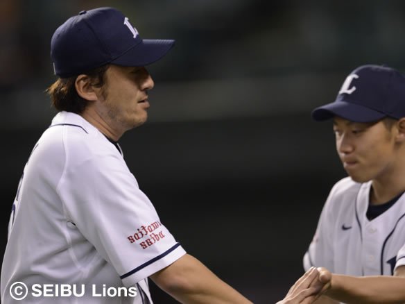 ピンチを背負い、強打者・和田を迎えた十亀は、ヒット性の当たりをセンター・秋山が捕球したことを確認すると、ホッとした表情を浮かべてグラブをポンとたたきました。ルーキーが2イニング目も無失点でつなぎました。ここはライオンズ打線が力投に応えたい! |