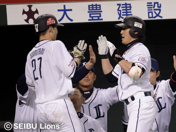 反撃を許した直後、先頭の炭谷が長打を放つと、送りバントと犠牲フライで1点を追加。ここまで3安打で3点を奪う、実に効率の良い攻撃です! |