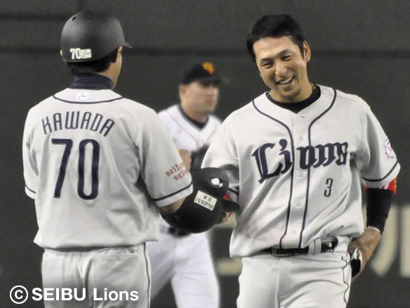 この回は西口が打って走って大活躍! 勝ち越し点を演出すると、中島が相手を突き放す一発を放ち、3点をリード! ライオンズファンの歓声が東京ドームに響き渡っています! |