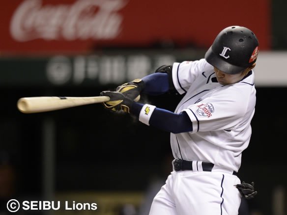 7番 大崎 二ゴ 初球、高めのスライダーを引っ掛けて高く弾むゴロは、セカンドに拾われて1塁へ送球された。この間に1塁ランナーが2塁へ進む。 |