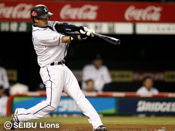 2番 栗山 レフトフライ フルカウントから高めのストレートをたたいて反対方向への飛球となるが、前進してくるレフトにキャッチされた。 |