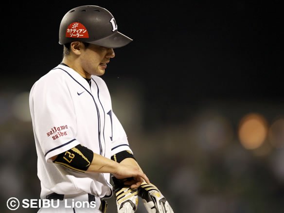 2番 栗山 一ゴ 1-2から外角への変化球を打ち損じたゴロはファーストに拾われ、1塁ベース手前でタッチされた。 |