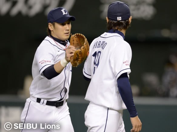 平野はピンチを迎えて鋭い打球を飛ばされますが、ここは片岡の好プレーに助けられて無失点でしのぎました! 昨日のヒーロー・大崎から始まる攻撃で追加点を奪いましょう! |