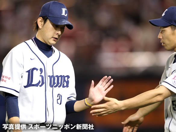 野上はこの回もランナーを出すも、2つの三振を奪うなどして得点を許しません! ここでベンチ前で円陣を組んだライオンズの選手たち。奮起して唐川に襲い掛かりましょう!  |