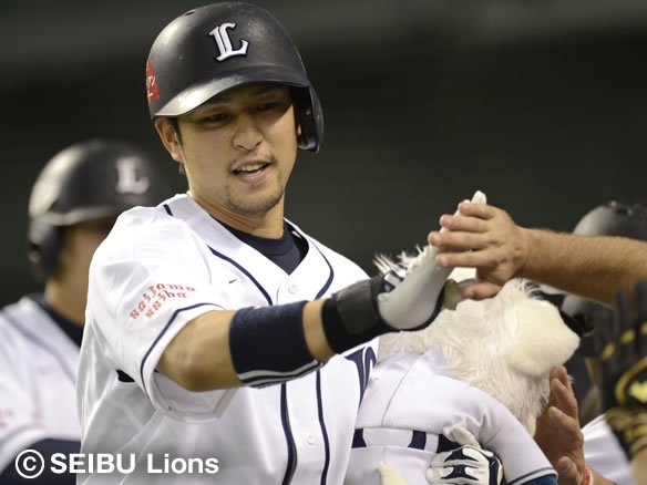 キャプテン・栗山がビデオ判定後も集中力を切らさずに先制タイムリーを放つと、4番・中島も甘い変化球にバットを一閃! 鮮やかな攻撃で4点を奪いました!  |