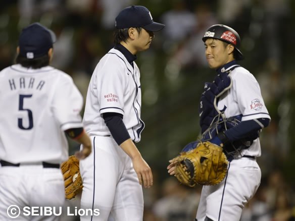 一発のあるホフパワーに大きな飛球を放たれた西口でしたが、3者凡退に仕留めました。落ち着いた投球で味方の援護を待ちます!  |