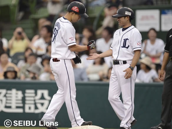 投手 牧田 投手 松永 【埼玉西武選手交代】 ピッチャー・牧田→松永 代走・星孝→キャッチャー 代打・星秀→センター |