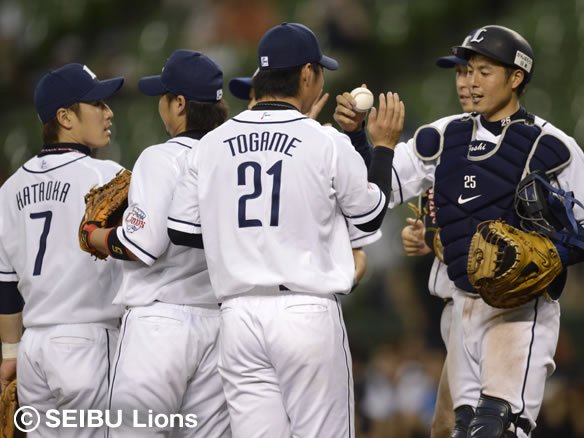 最後は十亀が2つの三振を奪うなどし、3人で締めて気持ち良く試合終了! 6回裏の大逆転劇で勢いに乗り、勝利をつかみました! 4位ホークスが敗れたため、これで4位に浮上したライオンズ。明日の「ライオンズ・クラシック 2012」では、菊池が今季初登板初先発。好調な打線が援護し、今カード3連勝を決めましょう! |