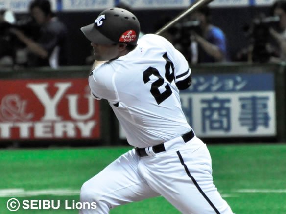 全員が背番号「24」のユニフォームを身に纏い、ヤフードームに乗り込んだライオンズ。攝津が際どいコースに投げ込んだ球を見極めてチャンスを作ると、カーターの一撃で2点を先制しました!! |
