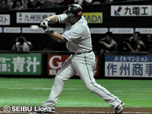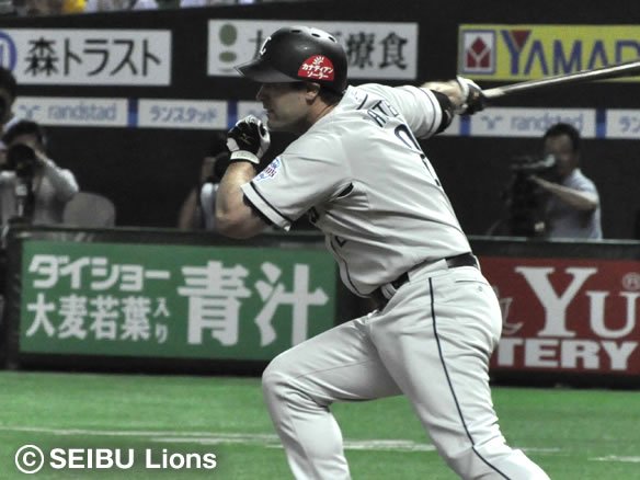 片岡、栗山が足で塁上をにぎわせると、今夜も5番・カーターが、左中間にはじき返す先制の2点タイムリーを放ちました! 連勝に向けて、好スタートです! |