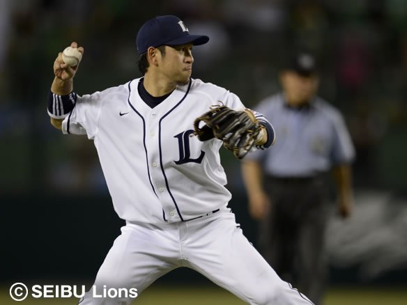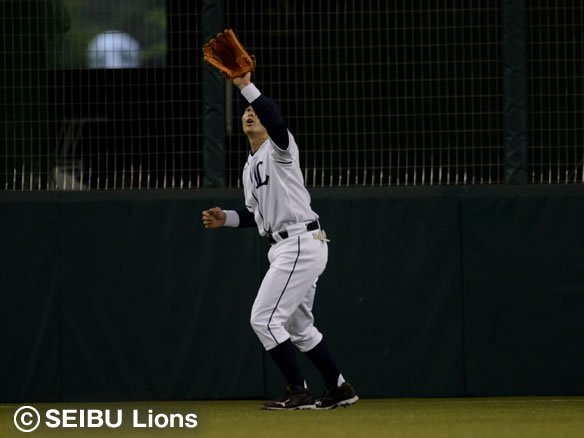 投手 大場 1番 栗山 左飛 初球、外角高めのチェンジアップを反対方向へ打ち返すが、高く上がる打球をレフトに捕球された。 |