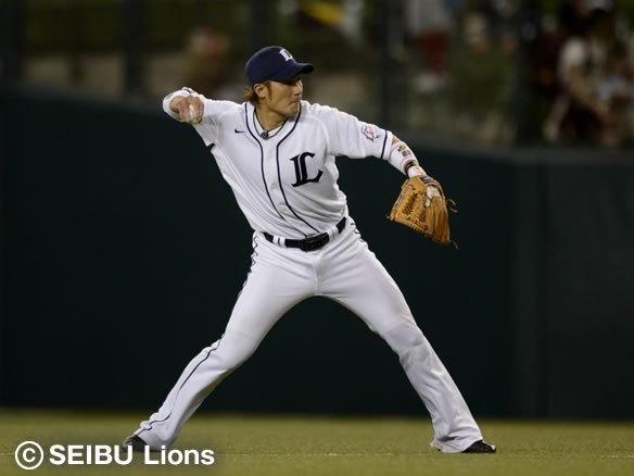 1番 栗山 三ゴ 初球、高めの変化球をたたくが、鋭いゴロはサードの正面へ。1塁への送球が高くなるが、ベースから足を離してキャッチしたファーストに直接タッチされた。 |